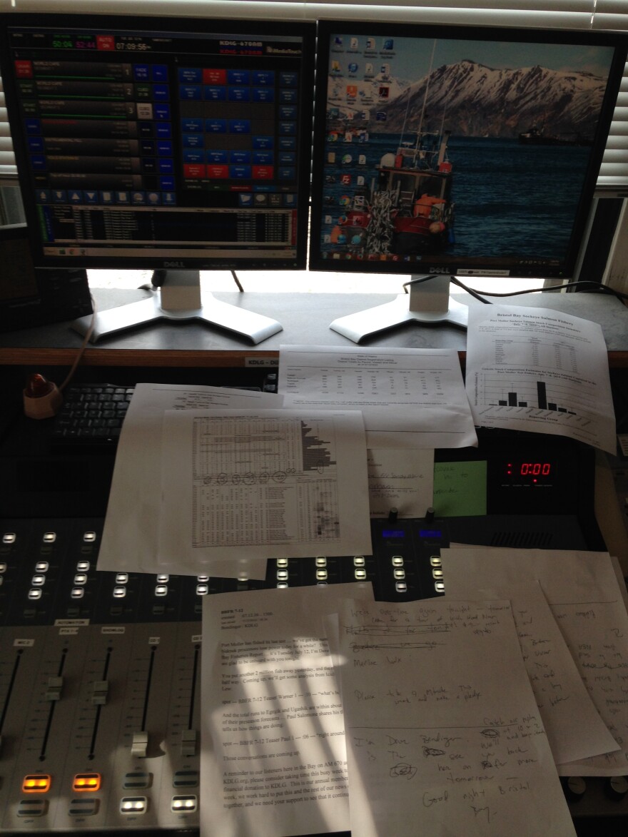 What does the live broadcast of the Fish Report look like, during pledge drive week, when we're holding out for the Port Moller catches and genetics? See left.