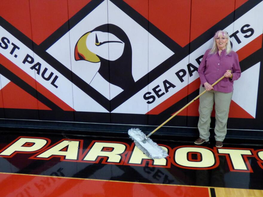 Now, in the predawn gloom before the start of the school day, she greets each St. Paul student as they hop down from parents' SUVs or four-wheelers. On St. Paul, the school day starts with a bilingual Pledge of Allegiance: first in English, then in Unangam Tunuu, the Aleut language.