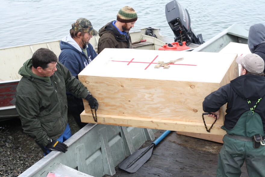 About half of Igiugig’s 69 citizens crowded into Saint Nicholas Orthodox church last week. The nave was hazy with incense as the priest conducted the funeral service in a mix of English and Yup’ik. In the center of the room sat three handmade, wooden coffins. Inside were the bones of 24 men, women and children from the now abandoned settlement of Kaskanak.